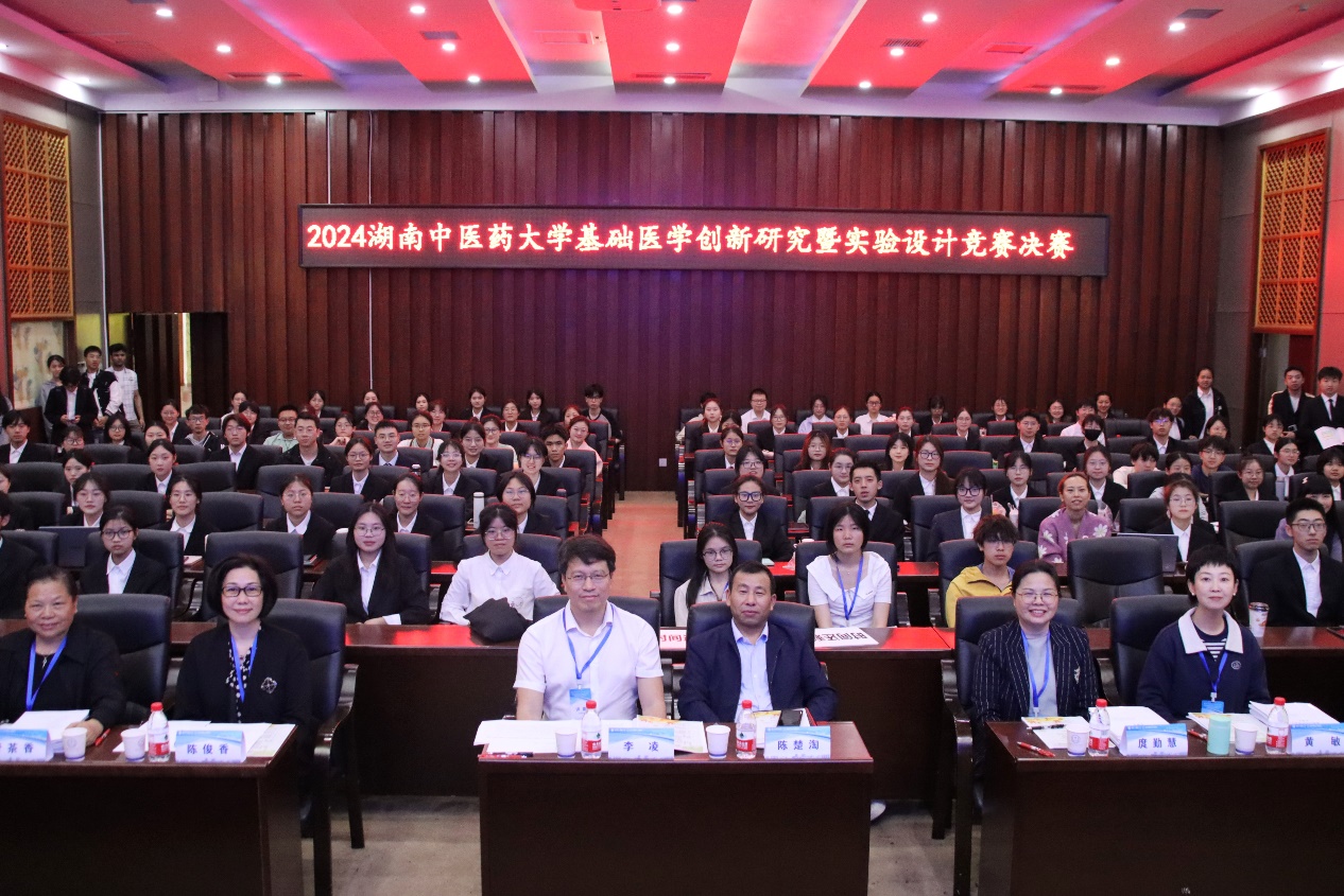 4月14日,湖南中医药大学基础医学创新研究暨实验设计竞赛决赛在国际教育学院一楼学术报告厅举行。大赛由学校教务处主办、医学院承办,本赛事全国组委会主任、南方医科大学医学院李凌教授、中南大学湘雅医学院陈俊香、管茶香教授、宁夏医科大学教务处副处长黄敏教授、大学医学院院长庹勤慧教授等多名校内外行业专家担任评委,从初赛91支队伍中遴选出36个团队参加本次决赛,涉及全校多个学院和专业的学生和指导老师。本次大赛由医学院副院长唐群主持。