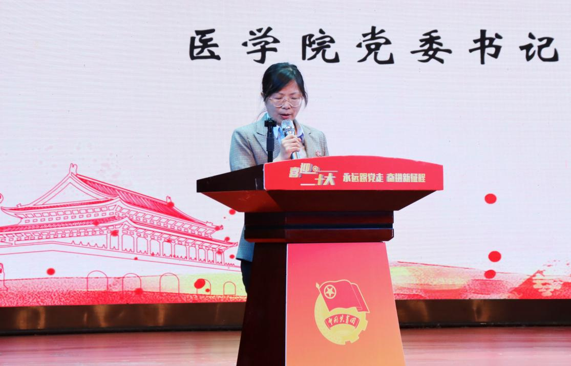 医学院党委书记文红艳发表讲话。文红艳代表医学院党委向参加本次会议的领导、老师和全体学生致以最亲切的问候,并对会议的召开表示祝贺。同时提出希冀:一、着眼大局,准确定位;二、自我提升,树立榜样;三、饱含热情,竭诚服务。文红艳希望每一届团委、学生会都能够继续发扬医学院的优良传统,秉承丰富的组织文化。在领导、老师的指导下,齐心协力建设更加美好的医学院,更加注重理论的研究和创新,实现更好地服务于同学的成长成才,服务高水平大学和学院的建设。