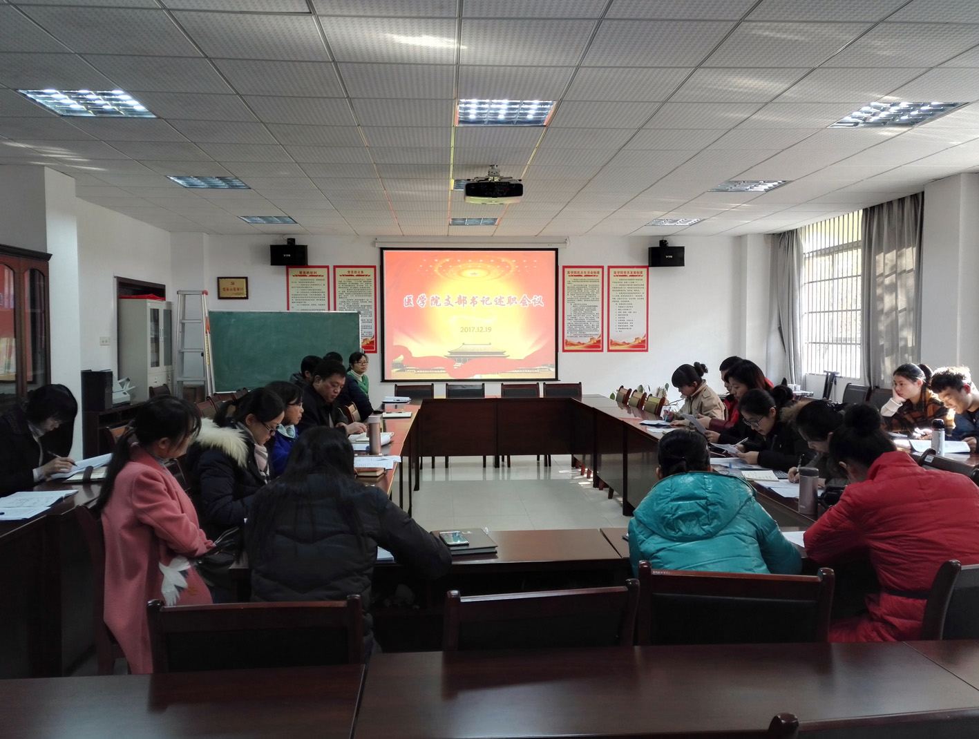 为加强党的基层组织建设,落实全面从严治党责任,根据学校《关于开展2017年度基层党组织书记抓基层党建、党风廉政建设和宣传思想述职评议考核工作的通知》,12月19日上午,医学院党委举行了2017年度党支部书记述职评议考核大会,医学院党委委员、支部书记、党员代表、群众代表22人参加会议。
