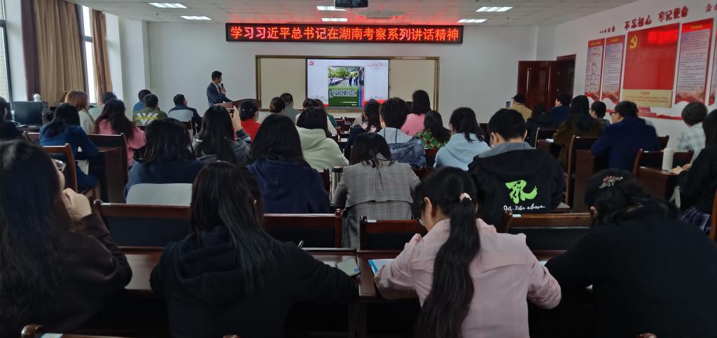 10月30日中午,我院在医学院会议室组织开展了“习近平总书记在湖南考察系列讲话精神”学习。本次学习活动由医学院党委书记文红艳主持,副书记王健为主讲人。全体教职工及部分学生党员参加。