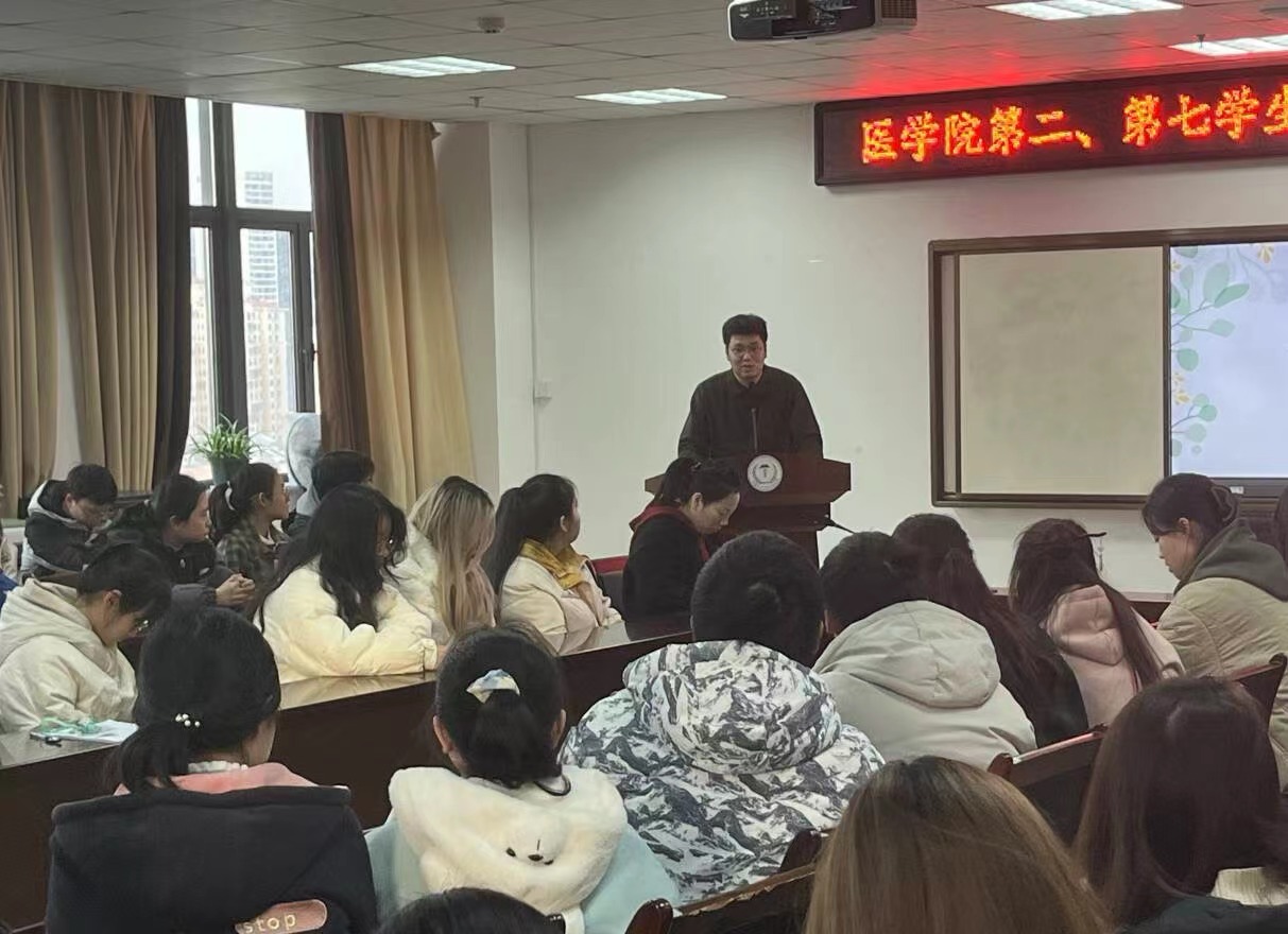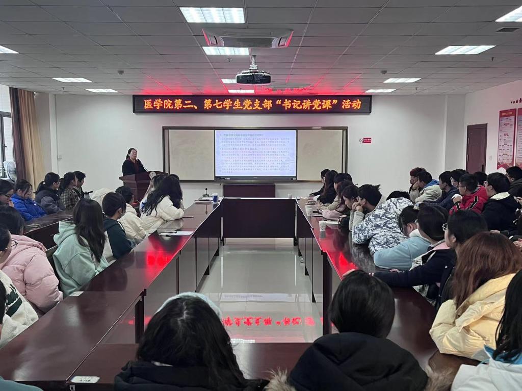 为深入学习贯彻习近平总书记关于加强和改进民族工作的重要思想,全面贯彻党的民族政策,引导广大高校学生铸牢中华民族共同体意识。12月26日,医学院党委副书记李玉冰在医学院会议室为医学院第二、第七学生党支部讲授专题党课。会议由学生第七党支部书记颜晔主持。