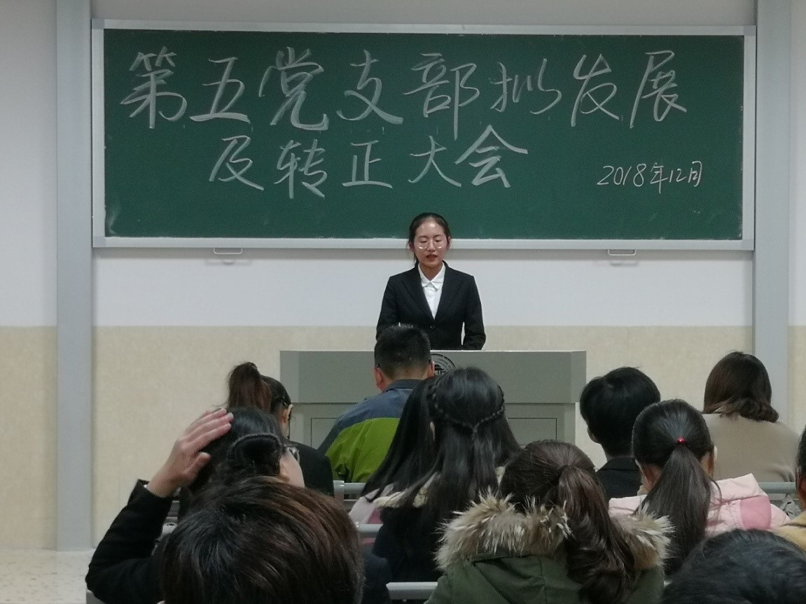 会议严格按照党组织接收预备党员程序。接收大会开始,发展对象们逐一宣读《入党志愿书》,并向党组织汇报自身对党的认识、入党动机、个人经历以及在校表现等,随后入党介绍人陈彦孜同志、李轶哲同志向大会介绍其主要政治思想、学习、工作生活等情况,支部书记李轶哲同志向大会报告其现实表现的考察情况以及综合政治审查情况,与会党员对发展对象是否符合党员条件发表了意见。大会认为,朱晓娜等15名同志基本符合党员条件,经与会正式党员投票表决,大会一致同意接收朱晓娜等15名同志成为中共预备党员。