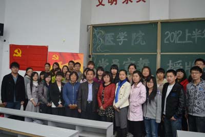 329下午,医学院2012上半年党员宣誓暨授牌大会在1306教室举行。医学院党总支书记、院长张秋雁教授,学生管理科老师、新老党员共同参加了此次大会。