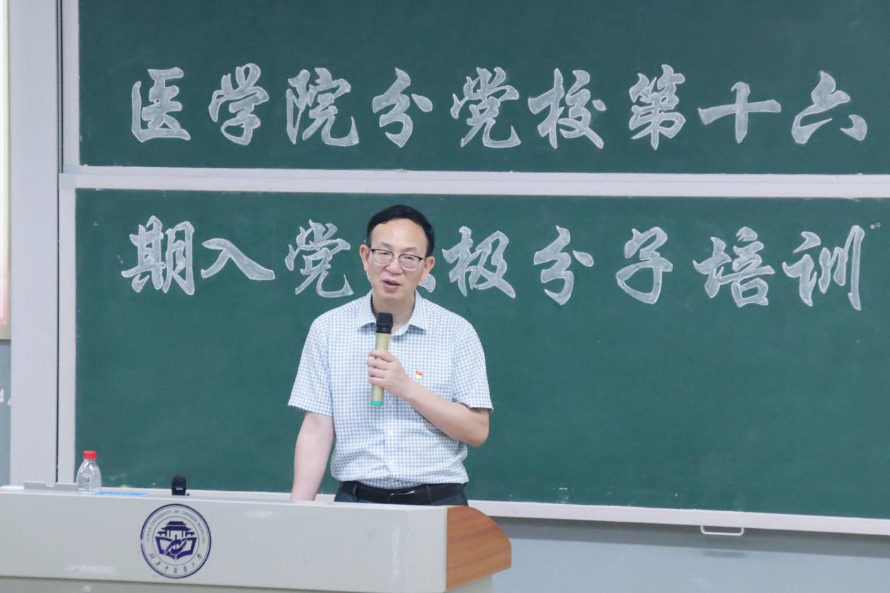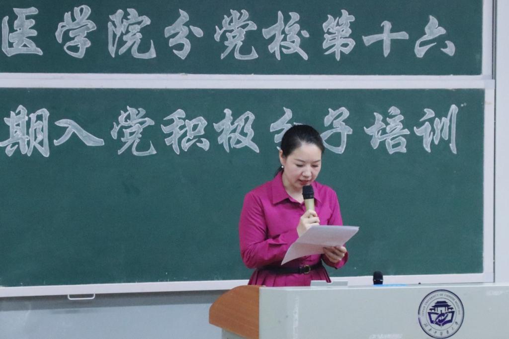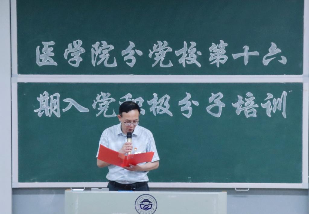 5月19日晚,湖南中医药大学医学院分党校第十六期入党积极分子培训班开班典礼暨首次辅导课于含浦校区济世楼117教室顺利举行。医学院党委书记、分党校校长雷晓明,党委副书记、分党校副校长李玉冰,学生管理科科长丑天舒,学生管理科副科长、分党校办公室主任廖海燕及全体学员共计100余人出席典礼。典礼由李玉冰主持。