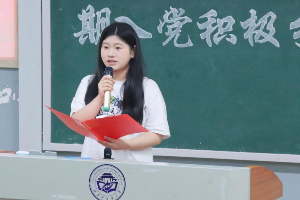学员代表郭文仪发言。她提到新时代青年需坚定共产主义信仰,在深入学习党的理论知识和增强党性修养的过程中提升自我。同时她给大家分享了三点行动建议:一、秉持谦逊务实之风,践行党的根本宗旨,彰显党员的先锋模范作用;二、强化团队协作意识,增强团队凝聚力,高效完成各项任务;三、勇担使命,开拓创新,于挑战中积累经验,以全新方法突破困局,逐渐成长为一名合格的入党积极分子。