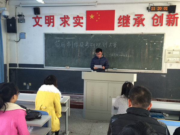 1126日下午,医学院2012级党支部于湖南中医药大学东塘校区21教室举办了简历设计、考研规划大赛复赛。