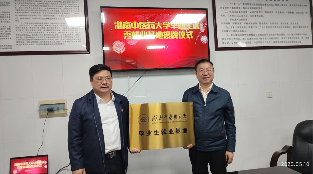 期间学校与衡阳市第四人民医院签订了毕业生就业基地合作协议并进行了授牌。