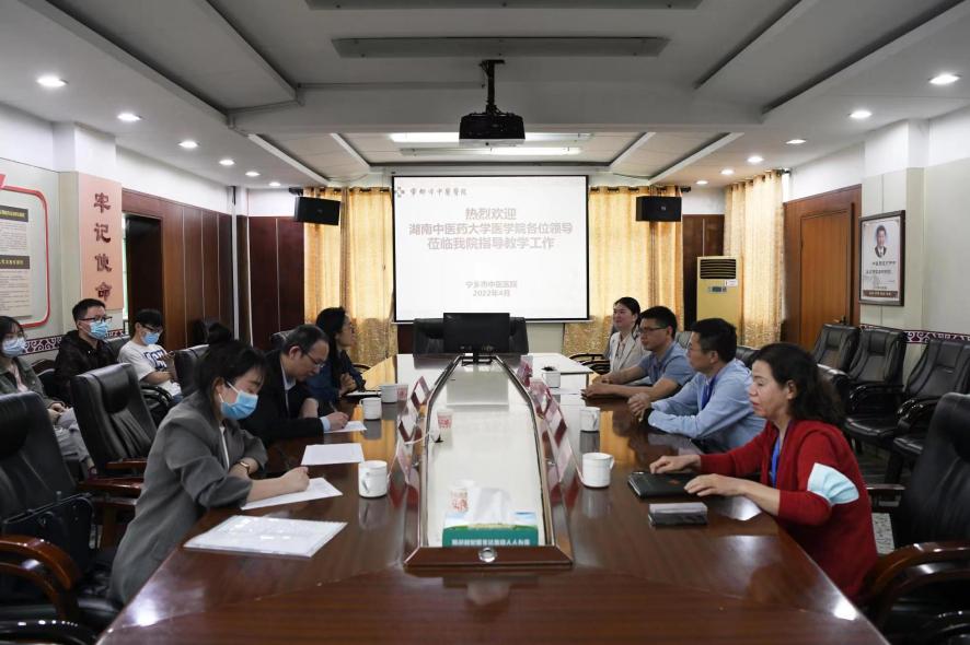 之后,医学院一行人来到宁乡市中医医院,同医院刘清波书记、文志宁副院长、科教科文京蕊主任、陶学军老师等开展巡查工作会议,我校宁乡市中医院全体实习学生参加本次巡查座谈活动。宁乡市中医医院刘书记表示对我校巡查一行热烈欢迎,并详细介绍过去一年我校实习生具体实习情况,给予高度评价。科教科文主任对我院实习生的实习情况进行了总体阐述,对我院实习生给予了肯定。雷晓明副院长、任婷副书记高度赞赏了宁乡市中医院对我校实习生认真负责的实习安排,期待在今后院校间有更进一步的合作。会议结束前,学院领导老师同宁乡市中医院全体实习生进行了深入沟通,深度了解了我校实习生在院的生活、学习等各方面的收获。
