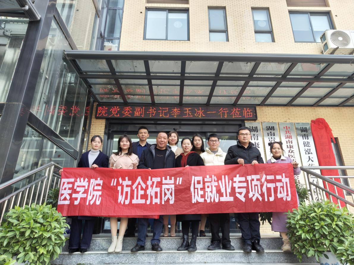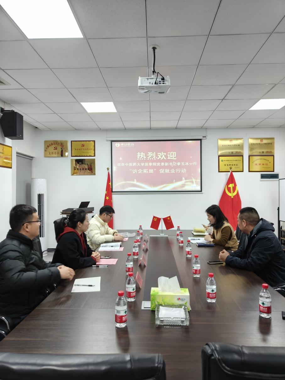 为进一步开拓毕业生就业渠道,加强校企合作,拓展就业新空间,破解学生就业难题,12月29日,我院党委副书记李玉冰、医学院学生科辅导员田喻、李轶哲、李思斌一行到湖南康众医药有限公司组织开展“访企拓岗”促就业专项行动,并召开座谈会。