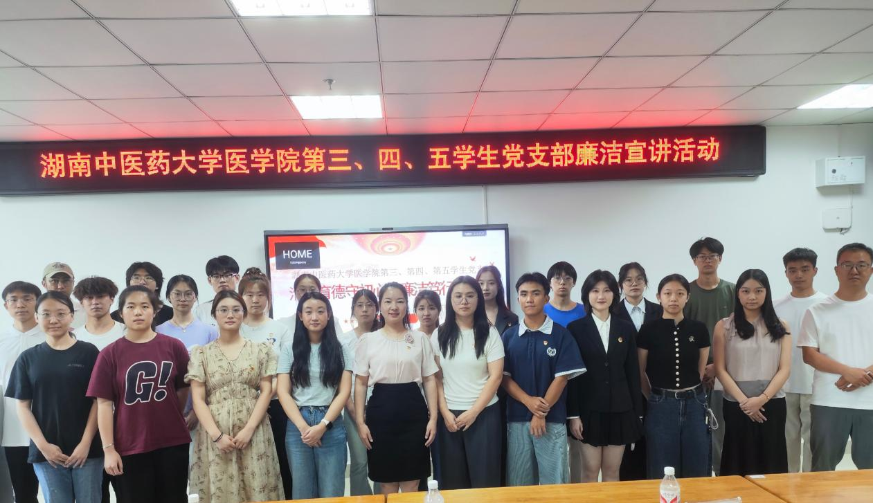 为深入学习贯彻新时代廉洁文化建设要求,切实增强支部成员的廉洁自律意识,2025年10月11日下午,医学院第三、第四、第五学生党支部联合举办了叙事赋能“清风育德守初心,廉洁笃行担使命”主题知识宣讲活动。医学院团委书记廖海燕、副科长兼分党校办公室主任艾力扎提·吐鲁洪、第三学生党支部书记钟小康、第四学生党支部书记刘娅薇、第五学生党支部书记赵宇玺以及23级临床专业辅导员吴聪仪出席活动。