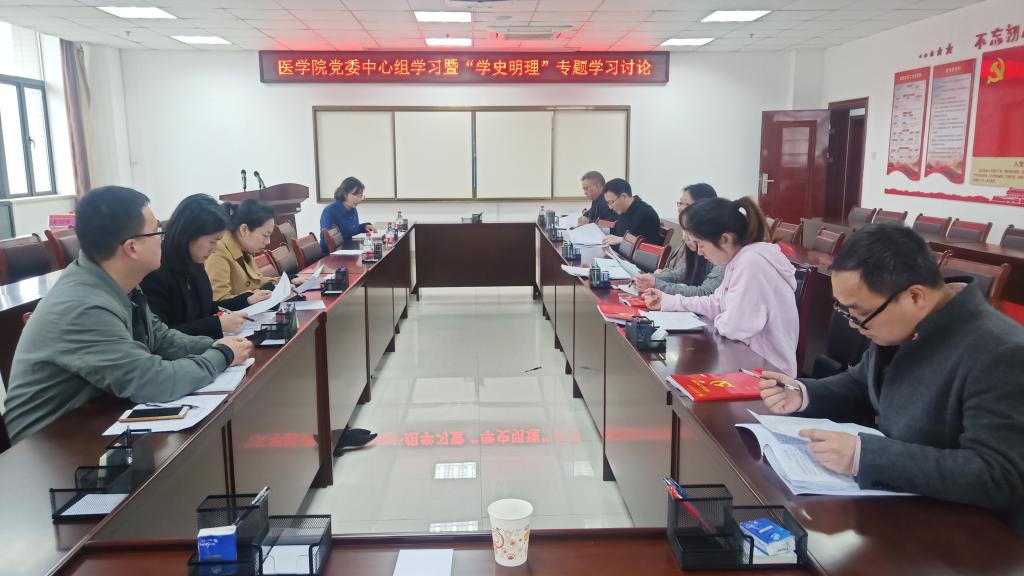 4月2日医学院党委围绕“学史明理”开展专题学习研讨会,党委成员、专职组织员、支部书记参加研讨会。