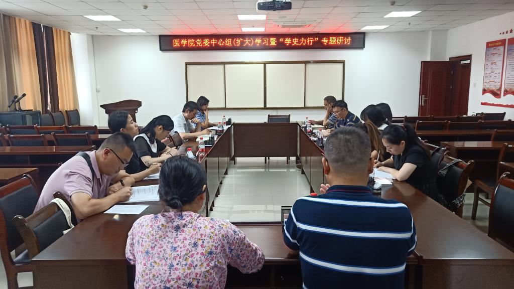6月10日,医学院党委中心组(扩大)学习暨“学史力行”专题学习研讨会在学院会议室召开,党委成员及支部书记参会。