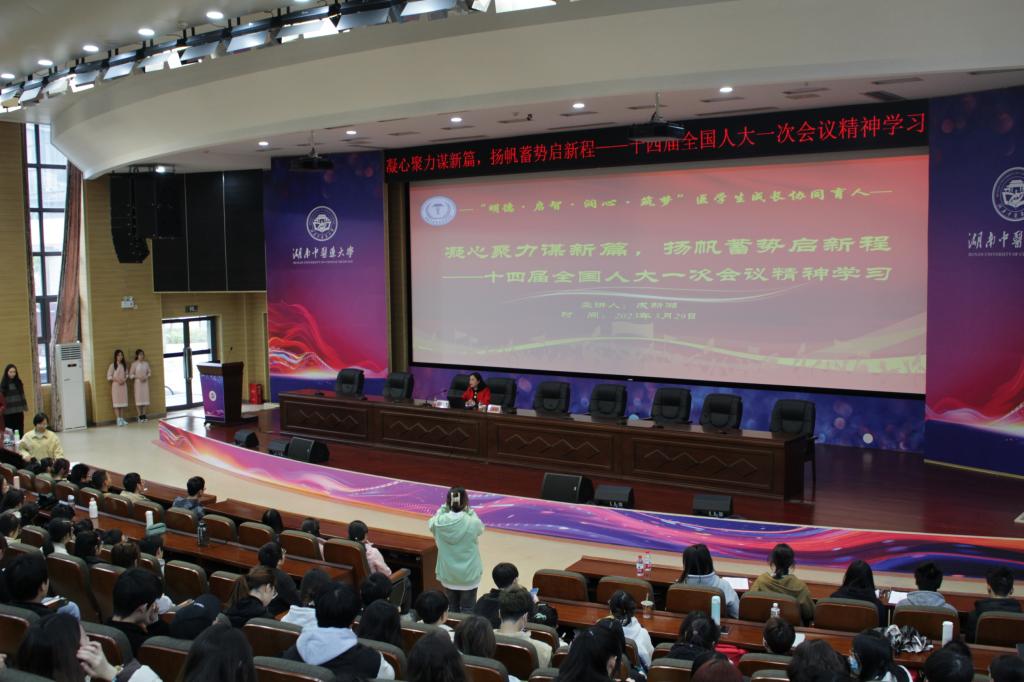 3月29日中午,第十四届全国人大代表、湖南省湘绣研究所有限公司执行董事成新湘受邀做客我院,为全院师生作《凝心聚力谋新篇,扬帆蓄势启新程》两会精神主题报告,报告会由学院党委书记文红艳主持。