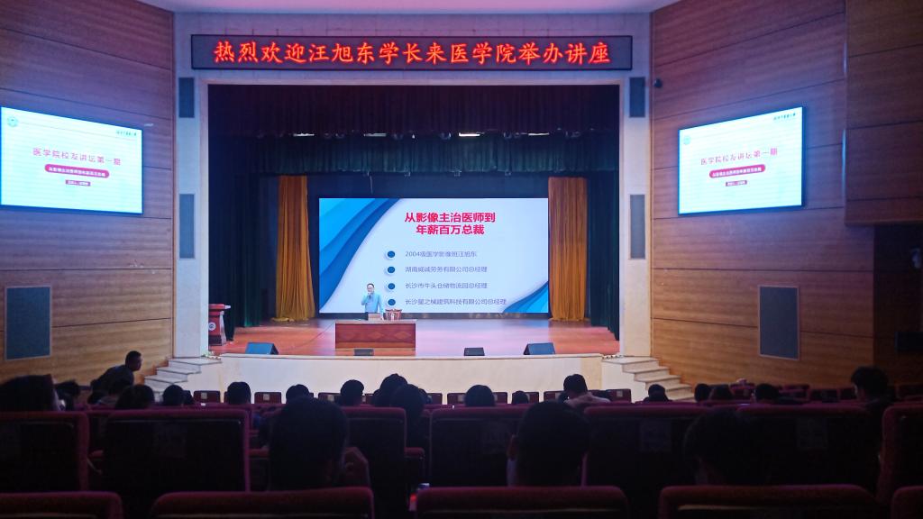 4月29日晚上七点三十分,湖南中医药大学医学院“校友讲坛第一期”在学生活动中心顺利举行。本次讲坛邀请了2004级医学影像学汪旭东学长讲授,2018级、2019级和2020级医学影像学专业的全体同学参加了此次讲坛。