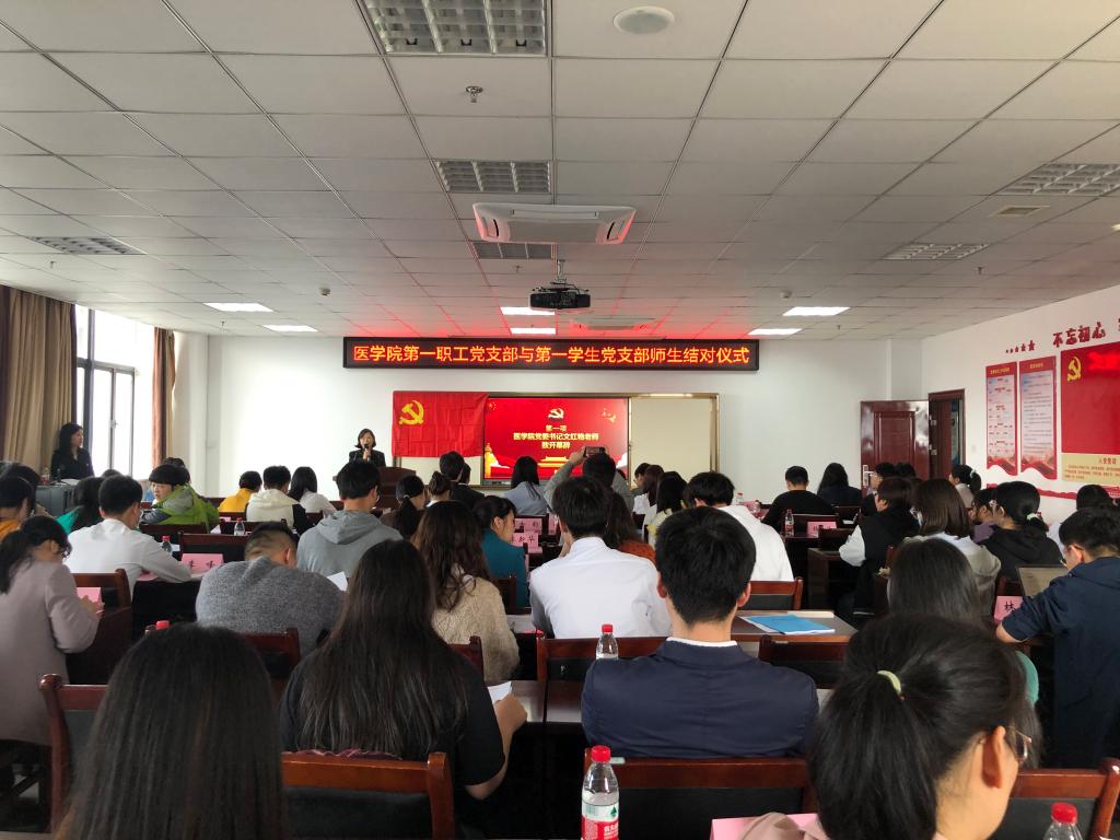 为进一步加强“四史”学习教育,铸牢心中信仰,坚定脚下步伐,4月23日下午,医学院第一职工党支部与第一学生党支部结对共进暨聆听党音之“学史增信”主题党日活动于第三教学楼13楼会议室举行,医学院党委书记文红艳、第一学生党支部书记刘莉老师、第一职工党支部全体党员和第一学生党支部全体党员及预备党员92人参加活动。