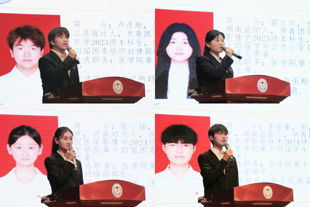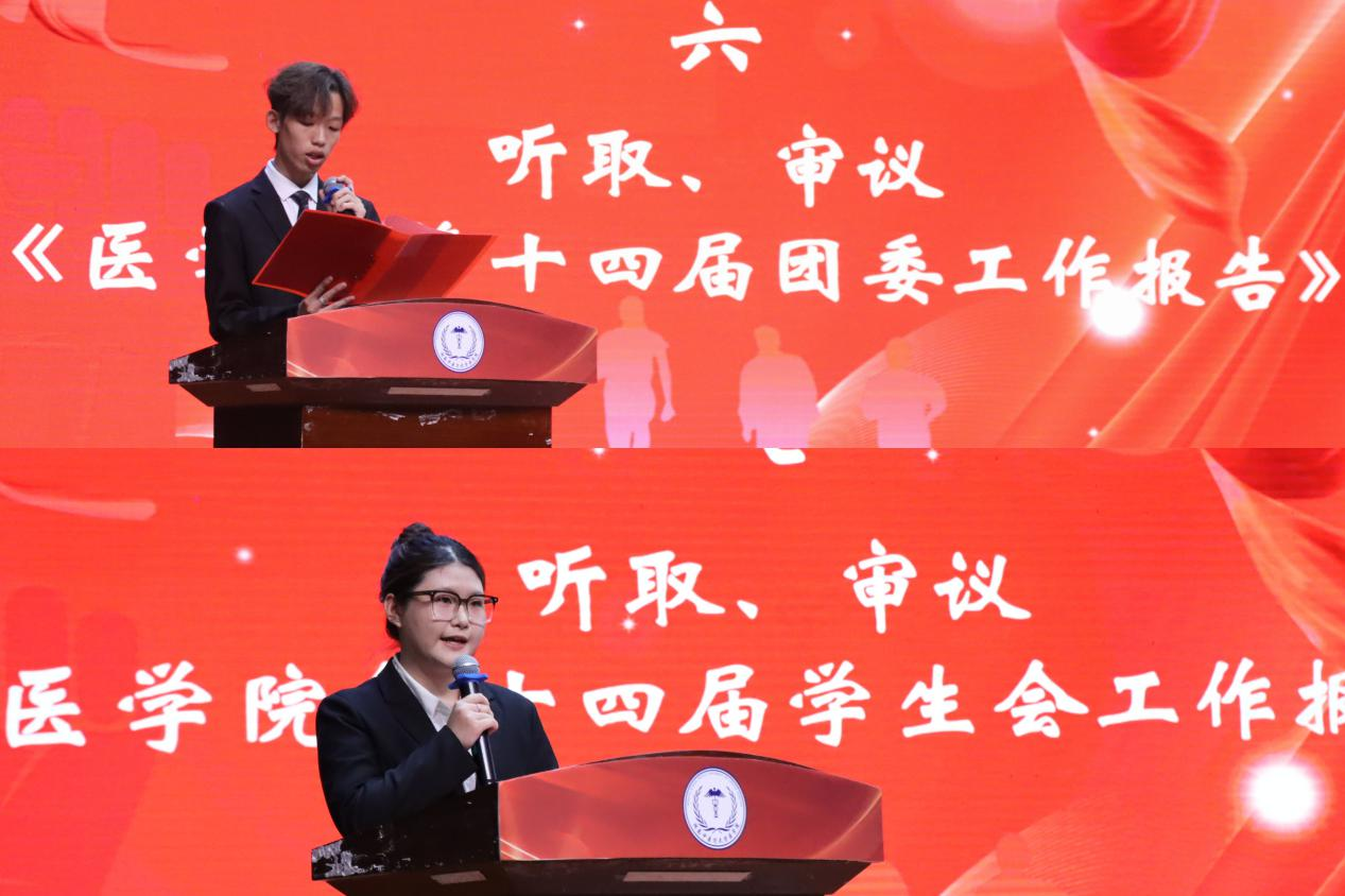 大会表彰医学院第十四届团委、学生会优秀干部,优秀志愿者和优秀队员。与会人员听取、审议医学院第十四届团委委员彭骏韬的《医学院第十四届团委工作报告》和学生会主席团成员刘梦琳的《医学院第十四届学生会工作报告》。
