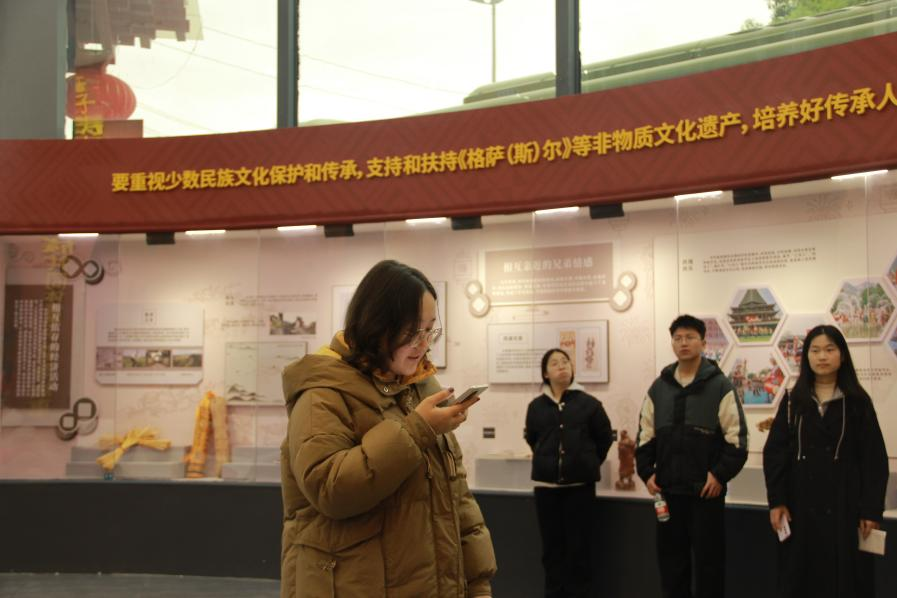 自由参观环节,同学们或研读文字,或交流探讨,用相机记录珍贵瞬间,深化对中华民族共同体意识的认知。此次活动是结对共进活动的重要实践,党员学生与结对的各民族学生在交流学习中加深了彼此的了解和友谊。