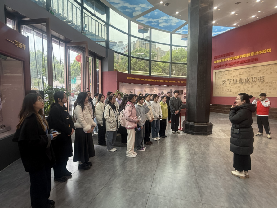 为积极响应习近平总书记关于传承红色基因的号召,深入贯彻落实党的民族政策,弘扬中华民族共同体意识,2025年3月30日下午,少数民族专职辅导员娜飞沙·亚力坤带领50名结对党员学生与各民族结对学生赴湖南省铸牢中华民族共同体意识体验馆开展“传承红色基因,凝聚团结力量”红色基地研学活动。此次活动由我校合欢花工作室组织。